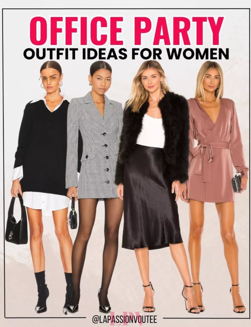 Общото правило за бизнес парти е изглеждай така, сякаш си в офиса на важна среща, но след нея ще отидеш на коктейл. Заменяш равните обувки с ток, голямата чанта побираща лаптоп с клъч или нещо по- ярко или блестящо, минималистичните бижута с по-смели, подсилваш грима и си готова 🥂.