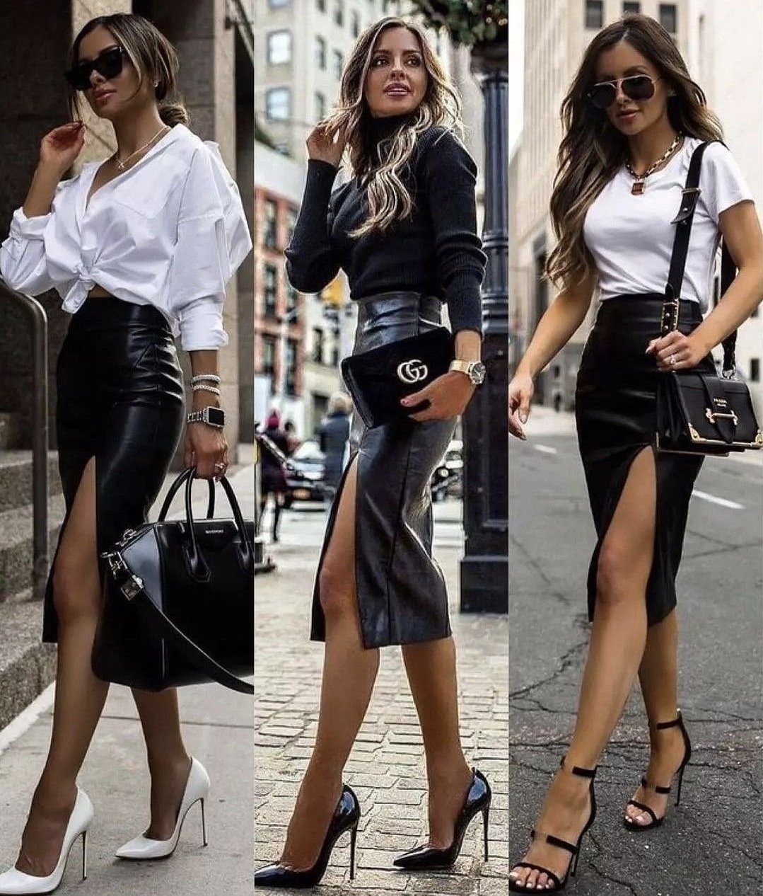 С лека и дори прозрачна блуза в бежово, кафяво и дори черно ще се получи добре.