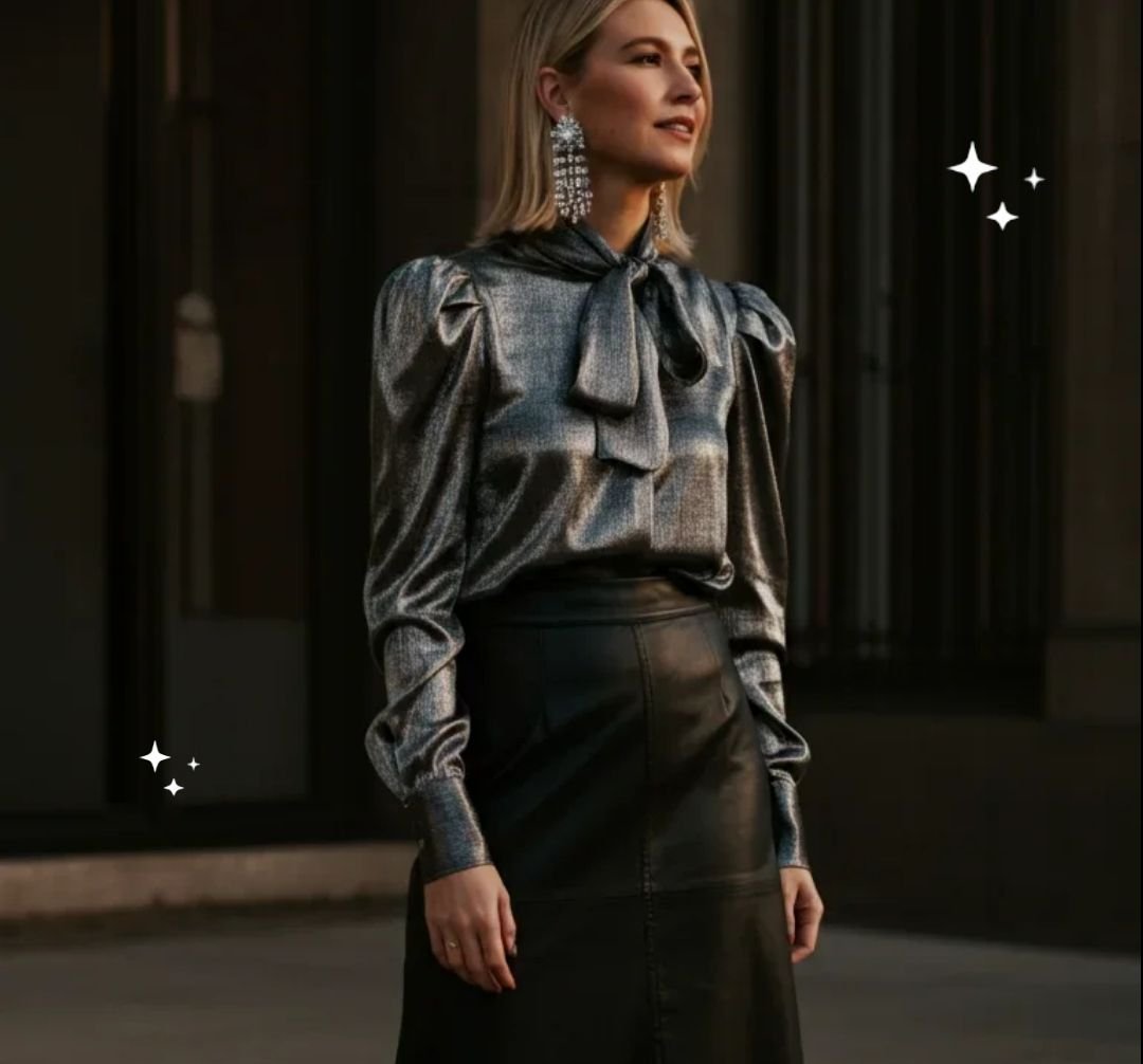 •   Silk blouse (white, ivory, or pastel) – with a bow tie neck for a very Chanel-inspired feel.