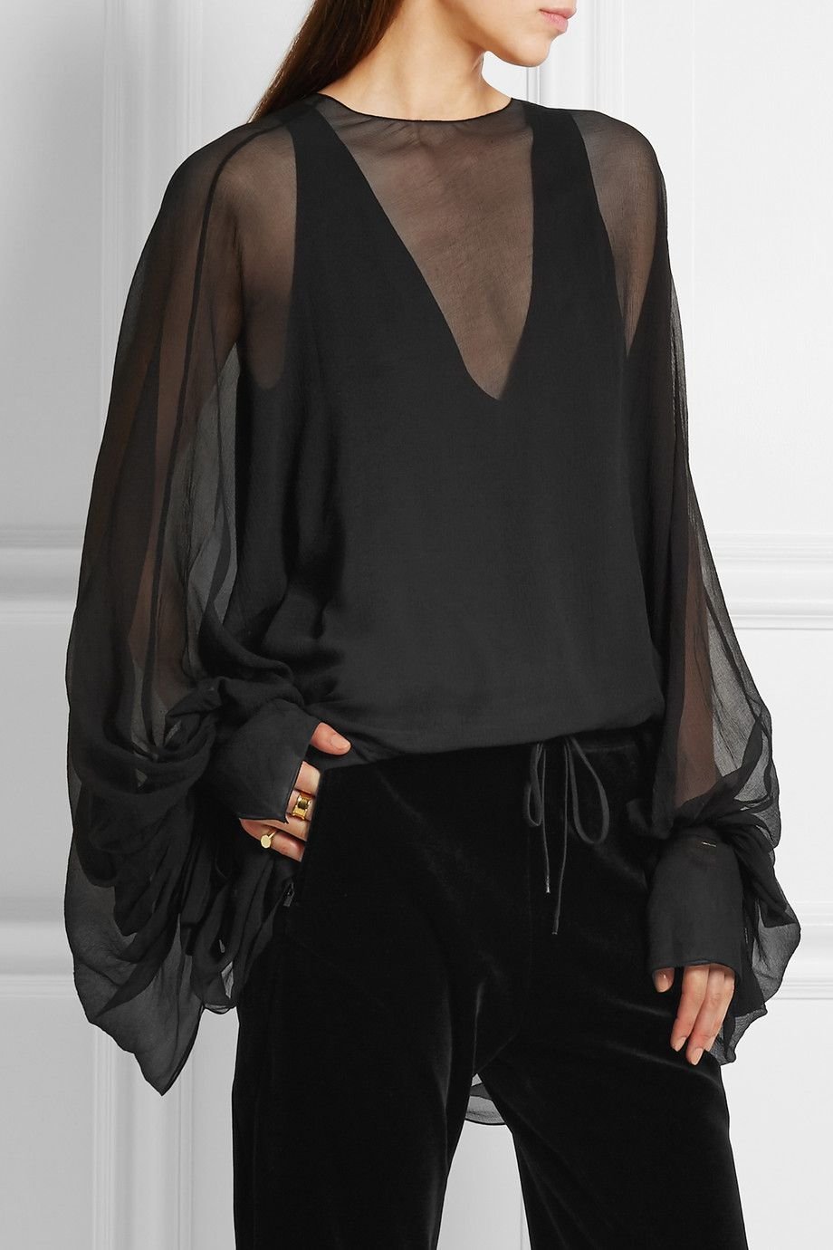 •   Sheer blouse – feminine but a little daring.