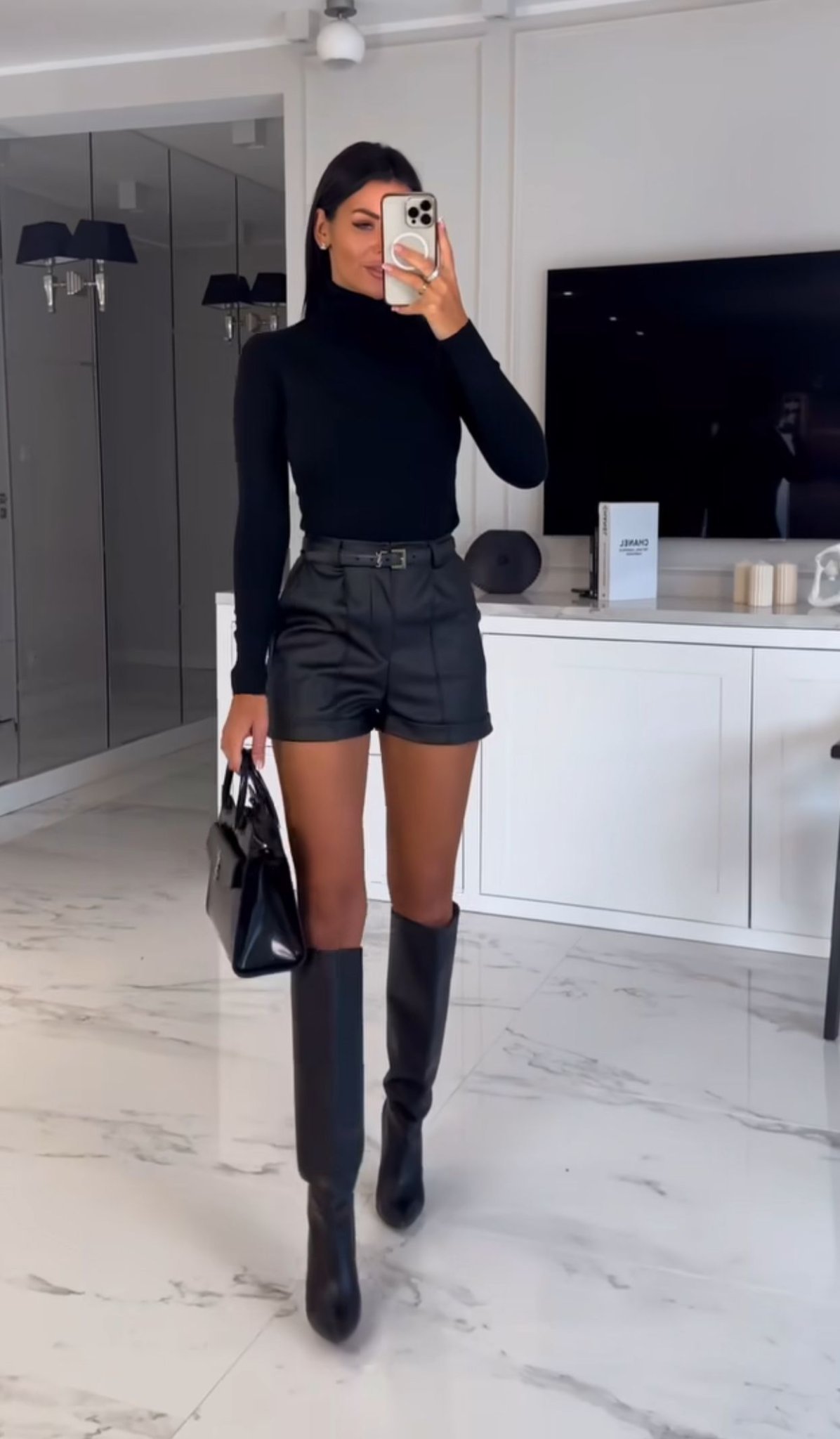 •   Turtleneck (black, cream, or camel) – sleek, especially in colder months.