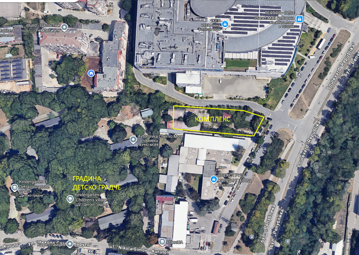 В карето между Детско градче/Елитис и  Делта планет, зелените площи- там са банерите.