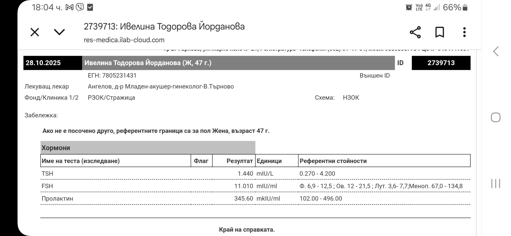 Здравейте. На 47години съм от 3 месеца нямам менструация,някой може ли да ми помогне да каже по тия иследвания дали съм в перименепауза .Гиниколога нищо  не ми каза освен че са нормални.. Възможно  ли е ако не са ти разбутани хормоните да навлизаш в менепауза?