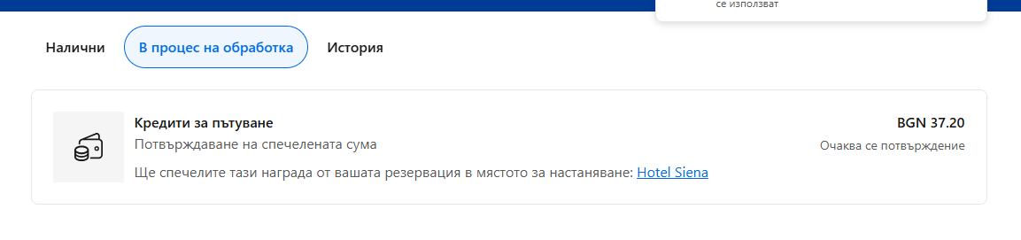 След успешно финализиране на резервацията ще получиш кредити в профила си. Официално срокът за това е дълъг, но реално често се случва до 14 дни след приключване.