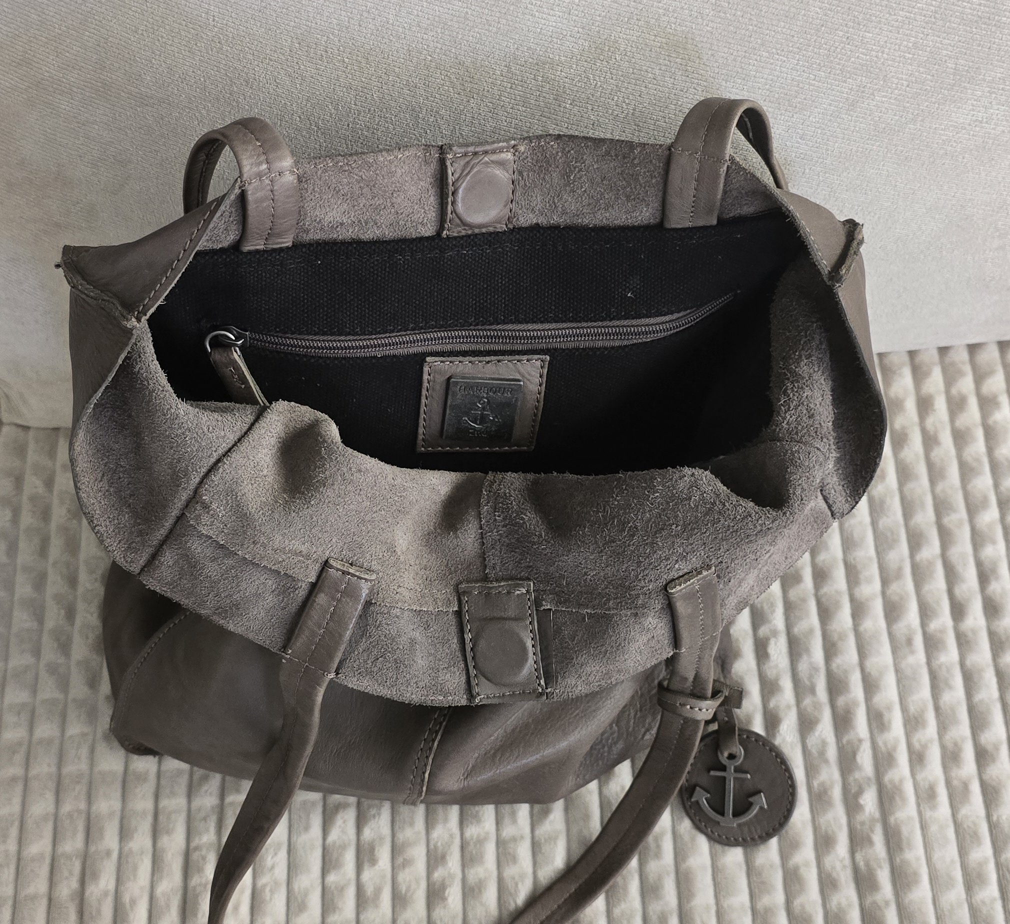 Точно тези дни си я нося. Имам я в три цвята, а за точно този е виновна deyzi /извинявай, винаги ми е трудно да ти напиша ник-а правилно 😂 🤗/ Както и преди съм писала, ако се носи на рамо няма начин някой да бръкне и да ви открадне носните кърпи. За останалото има два големи джоба с цип.  Аз не виждам проблем с това, че е без хастар. Дори да решите да я перете пак е без значение, даже вероятно е  плюс. Идеална ми е за ежедневието.