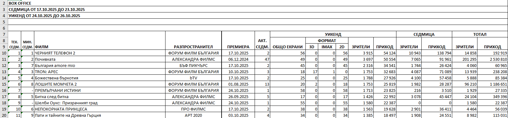 Много се бавят от Синефиша, така че го направих по по-сложния Бг боксофис.