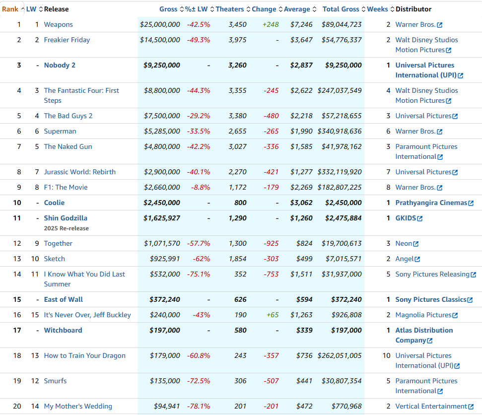 Като цяло по това време на годината, средата на Август си е кино мъртвило. Хората в северното полукълбо са в активна почивка, а по принцип боксофис блобкастърите излизат Май, Юни и първата половина на Юли, особено около 4 юли.