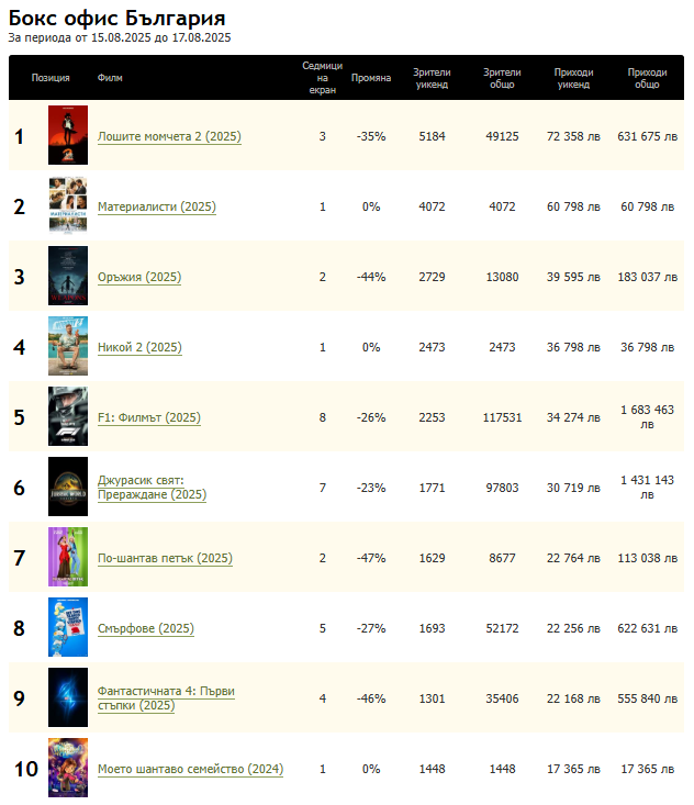У нас, Ф1 и Джурасик свят 2 млн. няма да чукнат, но пак са си сериозни хитове.