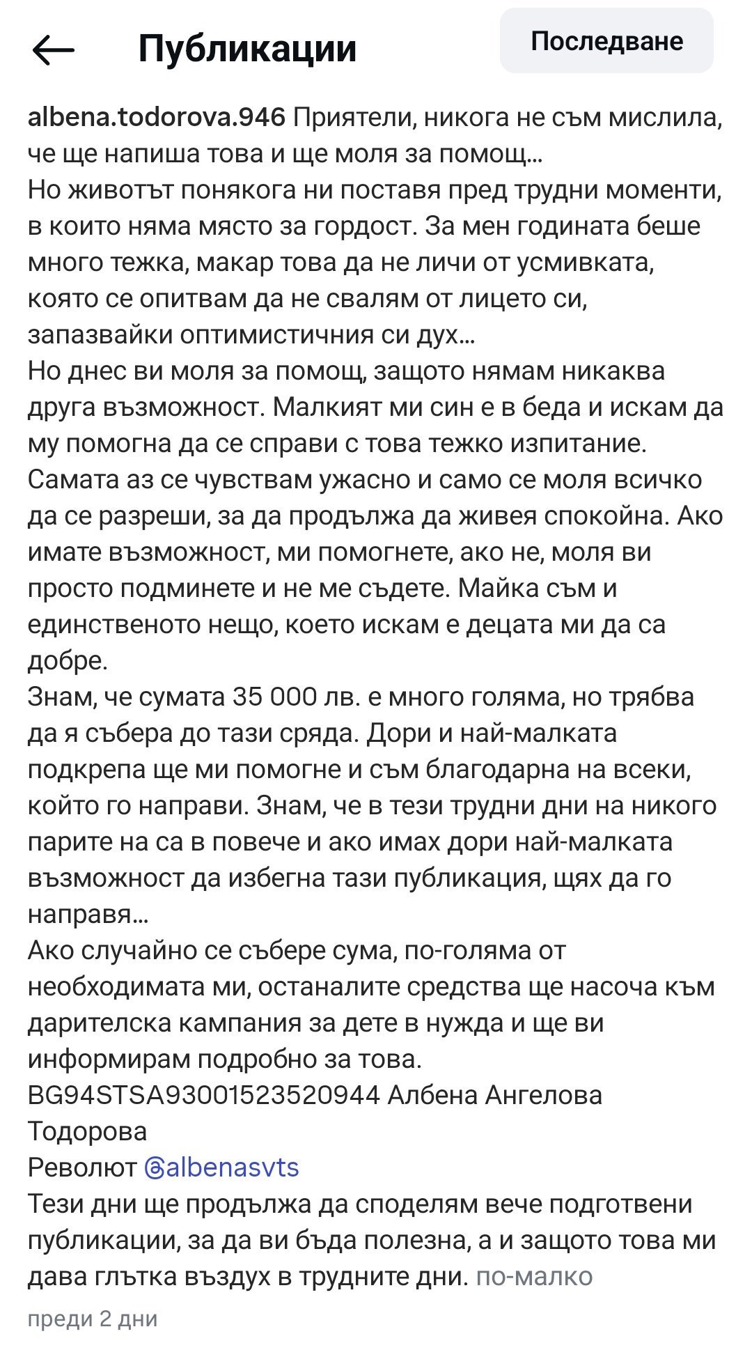 Разбирам възмутените, защото има много измами, но в случая измама няма. Жената има последователи от много години, явно нещо се е случило, защото имаше конкретен срок. За лихварите е просто предположение. Повечето хора, които казаха, че превеждат пари писаха, че го правят заради нея и защото от години следват блогът и. Преди това писаха, че е хакнат, защото е много нехарактерно за нея, което за мен означава, че е наистина отчаян ход.