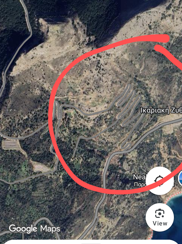 Сега на Самос в старото Вати сме подминали огромен паркинг и се завряхме ето тук, личат си деругите по ъглите 😀