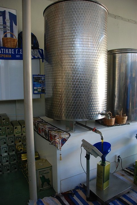 Забравих да ти покажа магазинчето за зехтин. 6 евро за литър и 2 евро за тенекията. Залепено е за тази гумаджийница. Хвалят и маслините им.