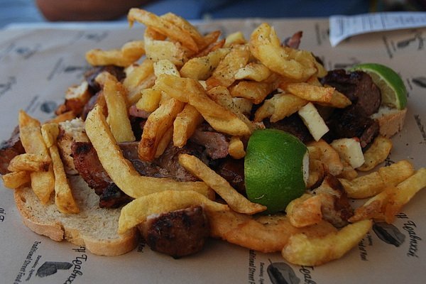В записките си за Гитио имам записани 2-3 рибни ресторанта на крайбрежната, но тъй като не сме по рибата, не сме ги пробвали. За сметка на това миналата седмица бяхме в едно ресторантче с мръвки. Беше много атрактивно. Поръчахме си нещо като мешана скара- от всичко по малко. Simple Smile Бяха 3 размера. Ние си взехме малка порция за двамата за 17 евро. Средната беше 27, а голямата не помня. Донесоха ни я върху една голяма хартия. Joy