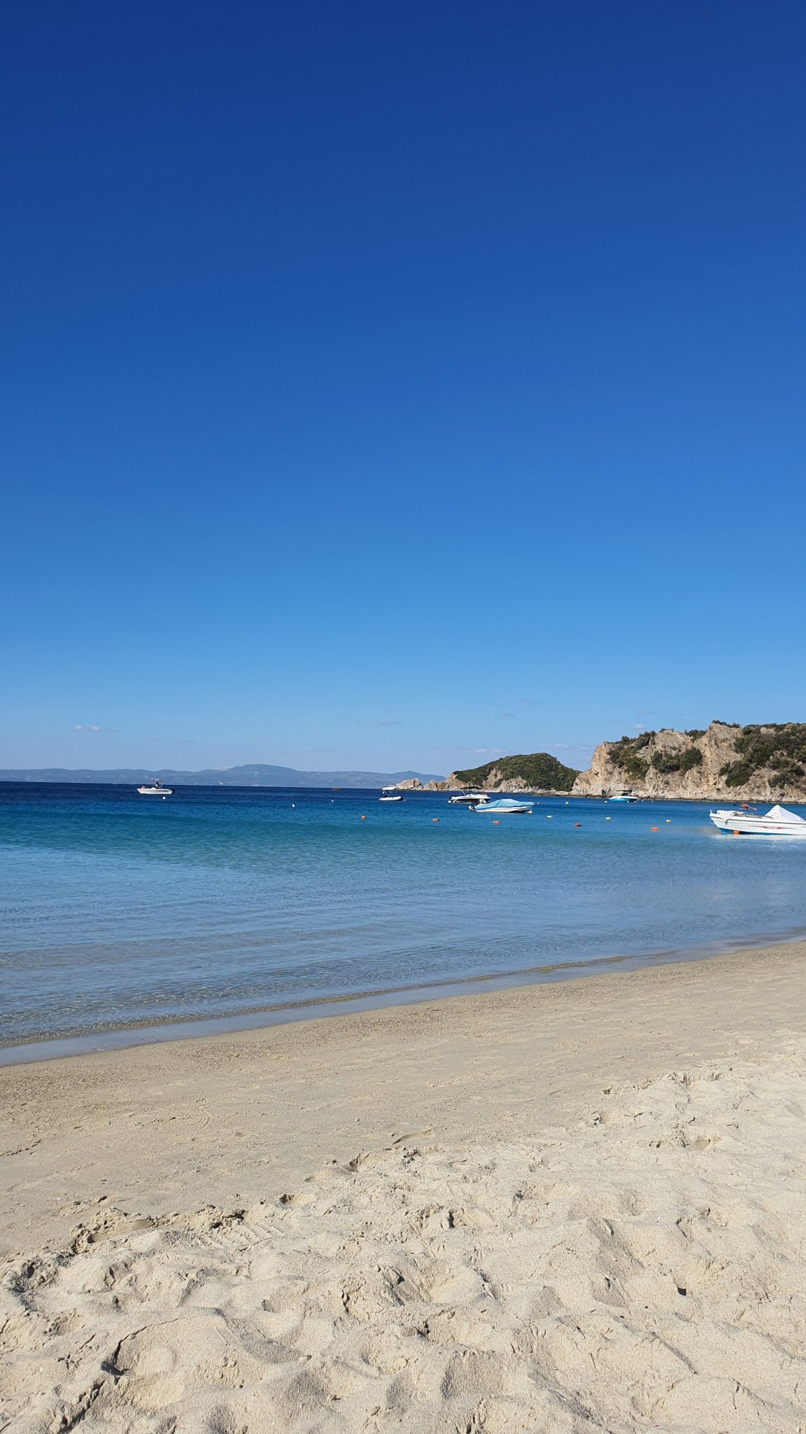 Момичета, поздрав от Амуляни! Чисто и спокойно море тази сутрин.