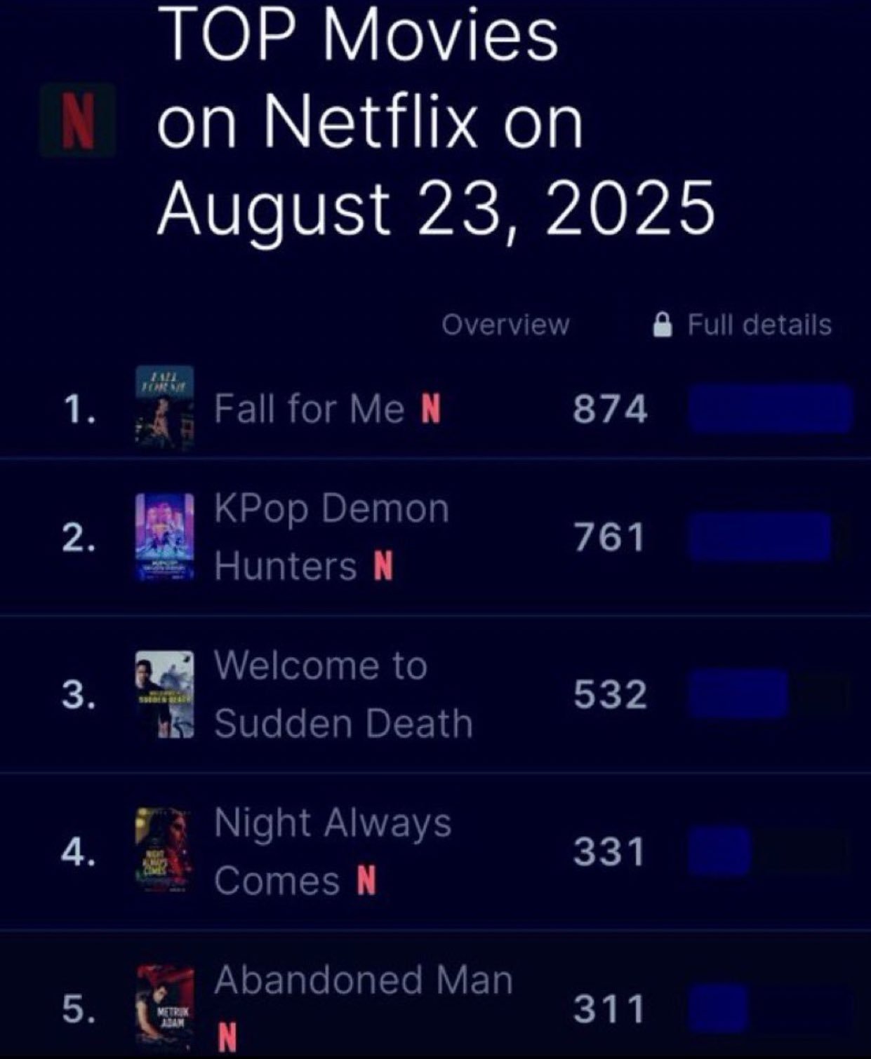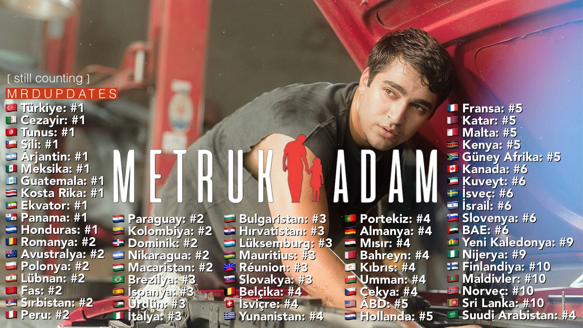 Филмът #MetrukAdam с главна роля на #MertRamazanDemir, пуснат в Netflix, влезе на пето място в списъка на най-гледаните филми в света още на първия ден от излъчването си. Освен това успя да се класира в списъка „Топ 10 филма“ в 47 държави. 🚀 (FlixPatrol)