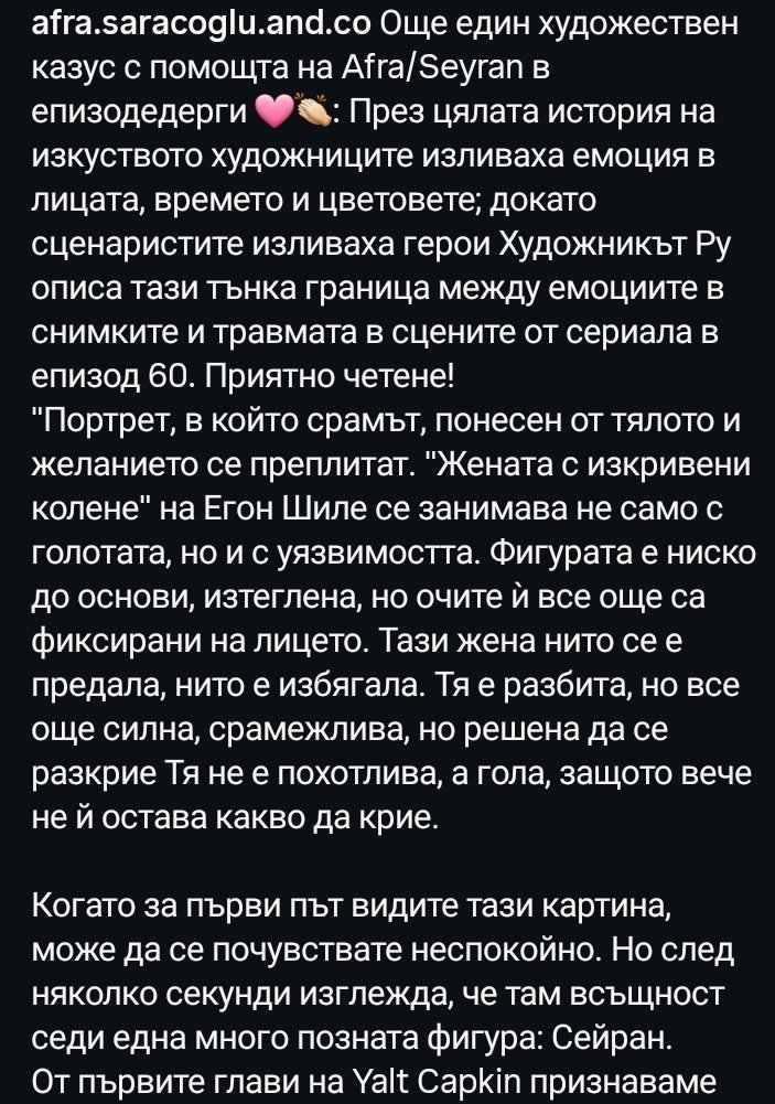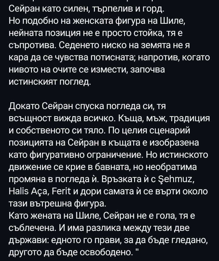 Превода е автоматичен,аз не зная турски,но се разбира и на мен ми хареса съпоставянето на образа на Сейран и тази картина на жена от 1917 г.