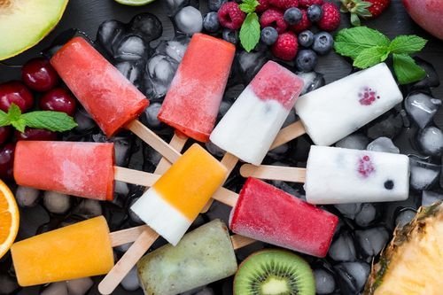 Разбийте съставките в блендер и пресипете сместа във формички за сладолед или пластмасови чашки, в които забийте дървени клечки. Сложете ги във фризера да замръзнат.