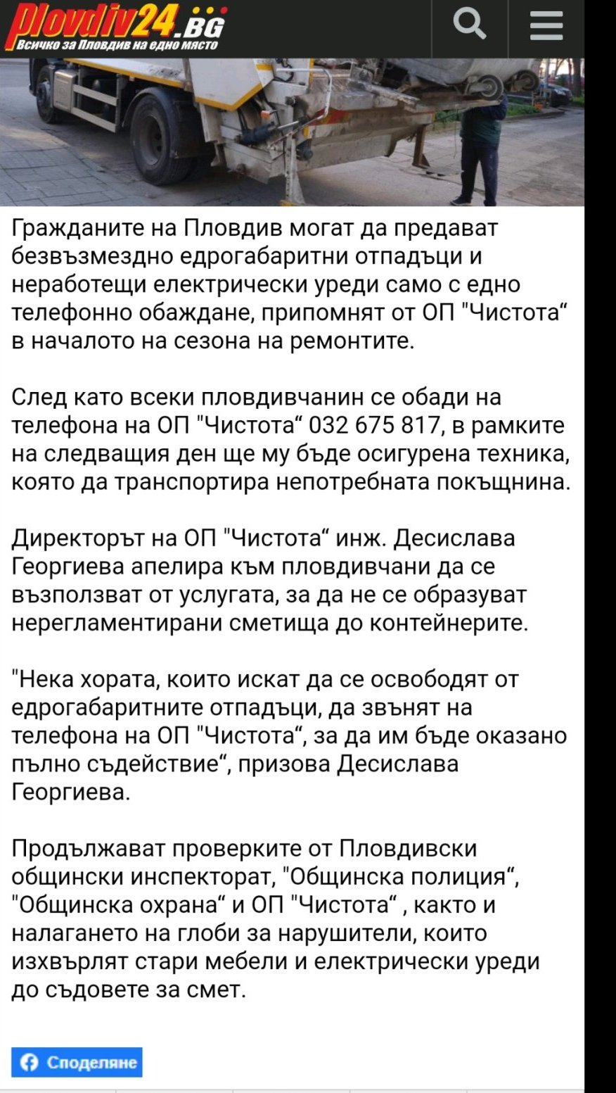 През приложението Re___ подавам заявка за отнасяне на всякакви ел.уреди. Идват на място и ги взимат. Трупам точки и засаждат дръвче срещу тях.