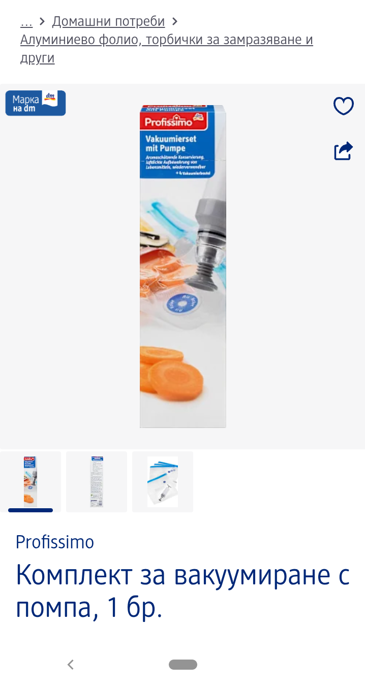 Ето тази джаджа от ДМ върши същата, че и по-хубава работа за вакуумиране, защото торбичките са за многократна употреба.