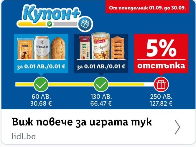 Забелязах, че лентата не зависи от направените покупки. Може в началото да е имало някаква зависимост, но не и в последните месеци. Просто на едни профили са "по-скъпи", а на други "по-евтини". И друг път съм писала, че имаме няколко семейни карти и ползвам тази, която ми е най-изгодна в момента. Двете карти винаги са до 200-250 лв, а другите две до 400-500 лв, независимо дали съм пазарувала с тях през месеца или не. И братовчед ми, който не живее постоянно в България има карта. Този месец обаче беше тук и надвиши лентата 3 пъти. Ами за септември пак е 250 лв. А може да смятат нещо като средно аритметично, а не да си правят изводи за потреблението спрямо само един месец.