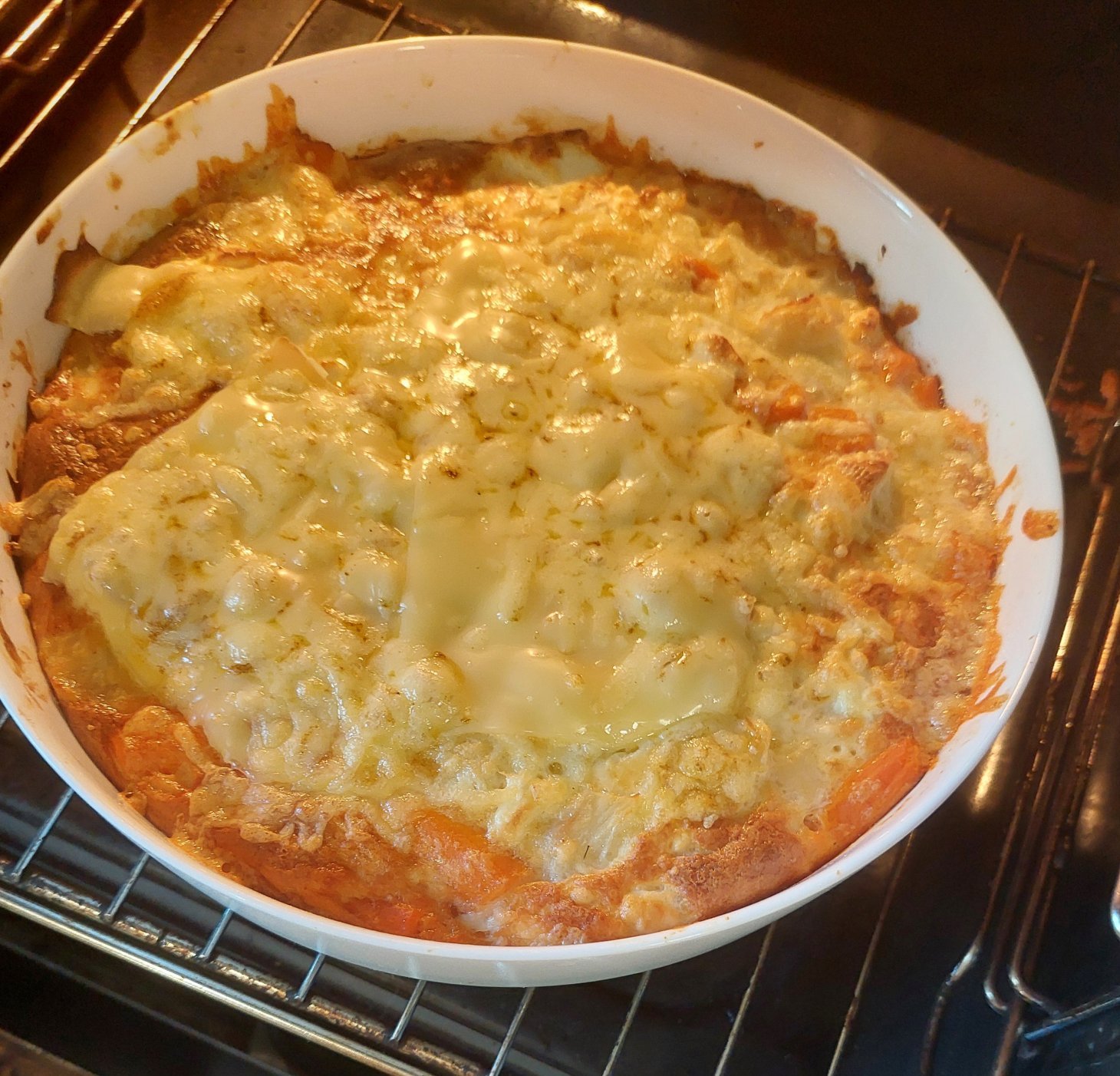 Това, което приготвям е запеканка със сирене и кашкавал.