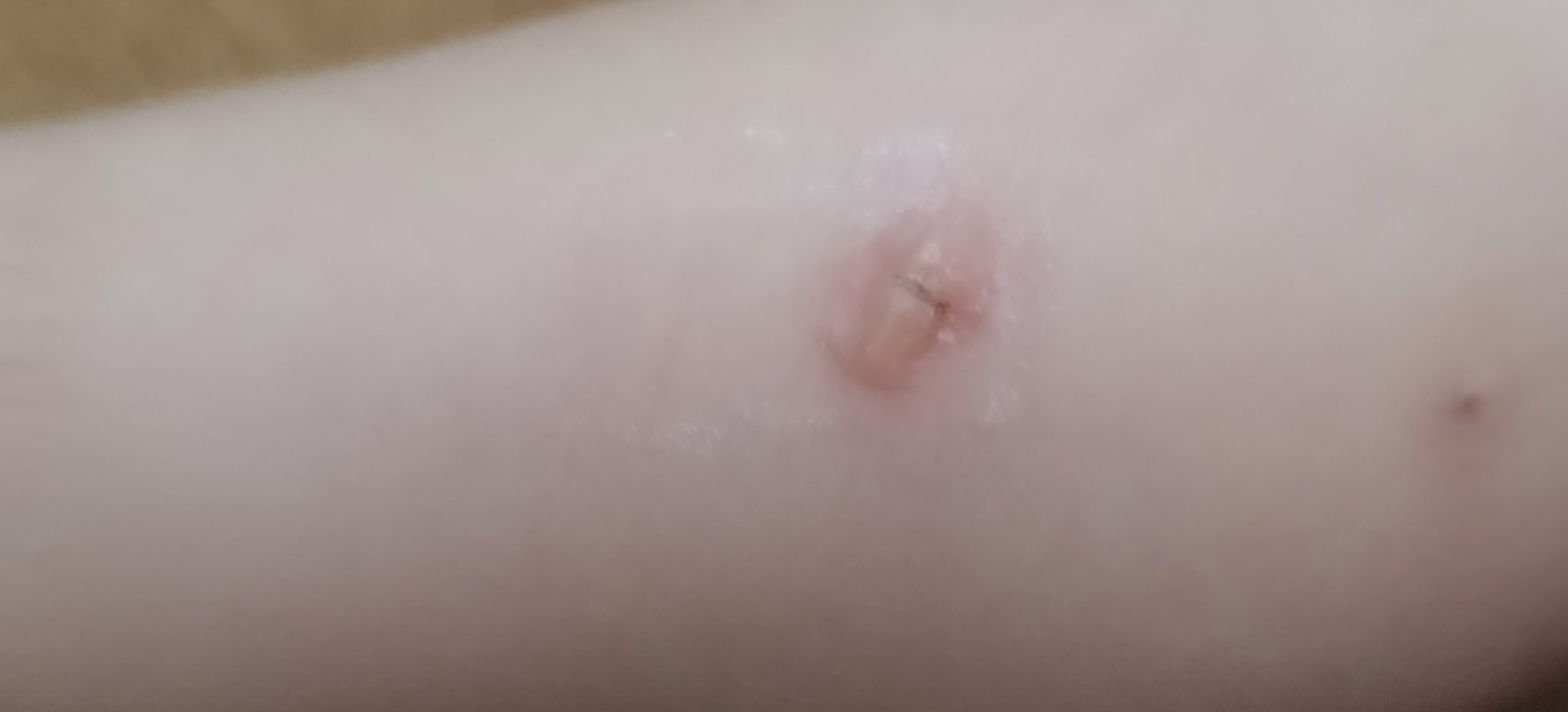 Здравейте ! В петък дъщеря ми се събуди с подкожна пъпка на крачето ,след градина беше станало на ситни мехурчета (едната снимка) заведох я при личния ,той каза че е ухапано от нещо и да мажа с фенистил,днес вече (другата снимка) голям мехур .. вече започвам да се паникьосвам ,какво е това чудо ,няма на други места ,няма температура,не я сърби .. дете на две и половина.. идеи някакви
