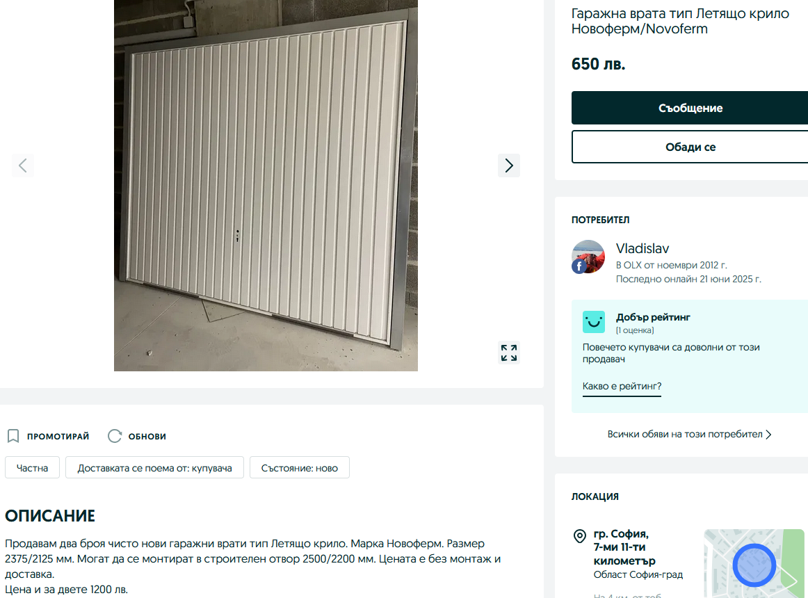 За гаража бих взела депозит и за дистанционните за вратите.