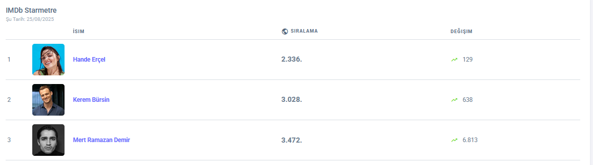 "Тази седмица #HandeErcel се завръща начело на IMDB Starmeter!