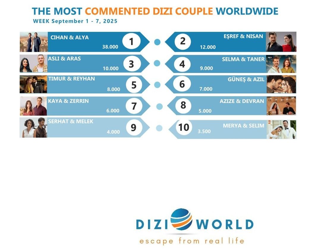 Тази седмица поред DiziWorld нашите са на 3-та позиция ( Арас и Аслъ) и 10-та ( Мейра и Селим) Simple Smile