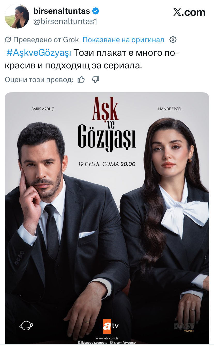 Благодаря за превода на филма Сърцебиене, очертава се да е много хубав, ролята на Керем беше малка, но тепърва ще се развива, най добре играе за мен Рейхан!! Филма ще бъде страхотен дано се вдигне рейтинга!!
