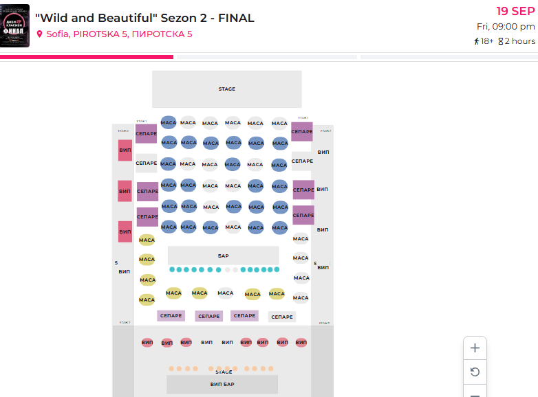 Билети за резервации на маси и сепарета тук https://www.entase.com/book?eid=68b57007f7985588ef061032&lc=en