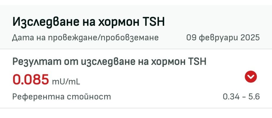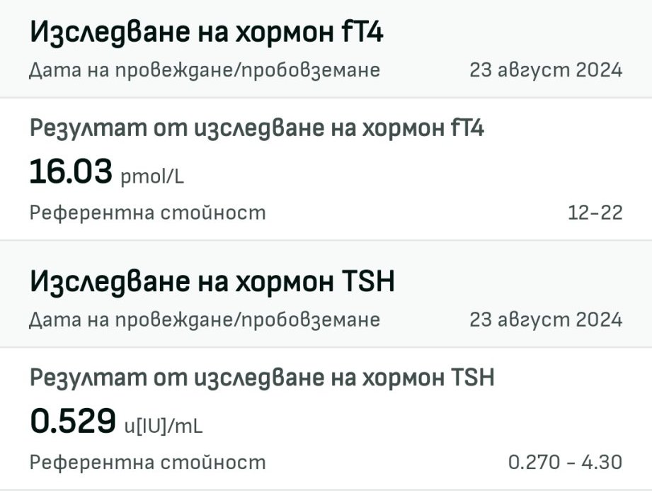 Здравейте момичета! Моля за коментар към тестовете ми. След този тест увеличих левотироксин на 87.5 мкг. (100/75 редуване).