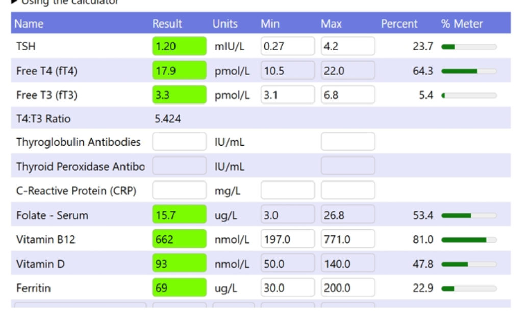 Понеделник ще пусна хормони, последно бяха добре, ако не отразяваме ниското ТСХ. Т4 беше малко под горната граница, Т3 не е оптимално, но не е нещо притеснително ниско. Това при контрола на дозата, на която съм вече дооста време, 100мкг.