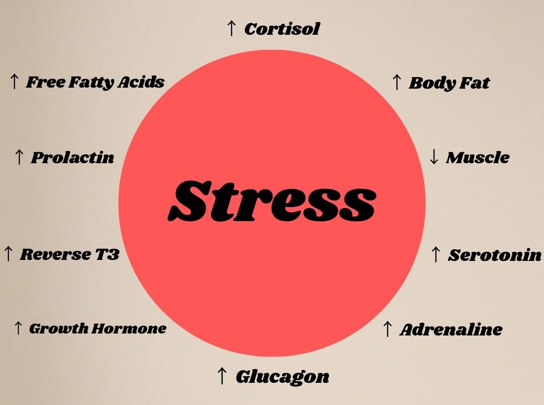 Как? Хормони на стреса ↓ Преобразуване на T4→T3. Те ↓ TSH и ↑ свободни мастни киселини.