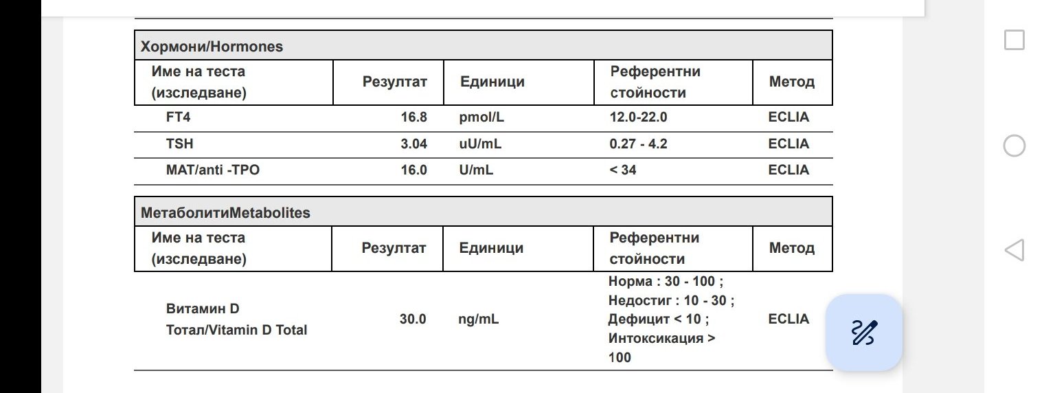 Благодаря! Не исках да обременявам темата с твърде много резултати от изследвания. Ето това се разбрахме да пуснем с ендокриноложката: