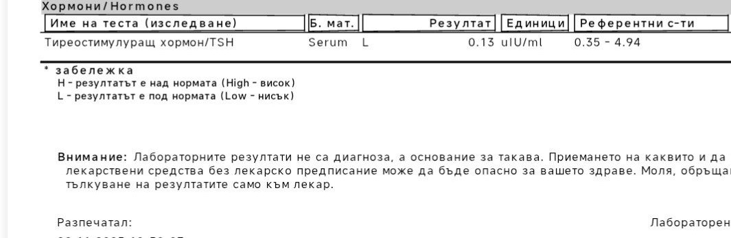 На кратко. 2023г ми откриха киста на ЩЗ, нямах хормонални нарушения, биопсията тогава и сега е добре. Кистата порасна и ми пречи, ще пробвам склерозираща терапия. Но сега изследванията имат отклонения. Как бихте ги коментирали? Имам записан час, но чакането е дълго...