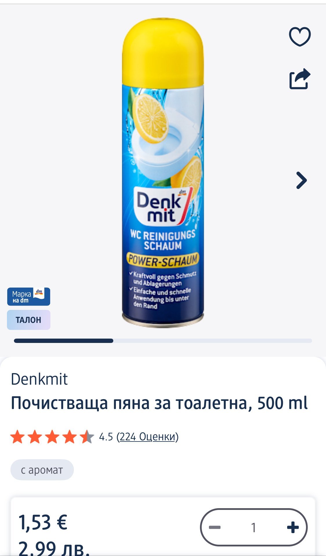 А з съм от доволните от пяната за тоалетна. Незаменима ми е за почистване на седалката, чудех се с какво да я почиствам и пяната е добър вариант, защото може да се нанесе в ъгълчетата. Изчаквам и изплаквам с душа.