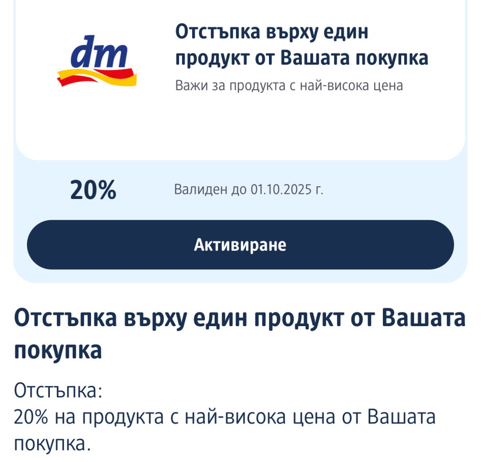 Имам такъв талон, но е за 15% и пише за всички DM марки. Поне в моето приложение е така.