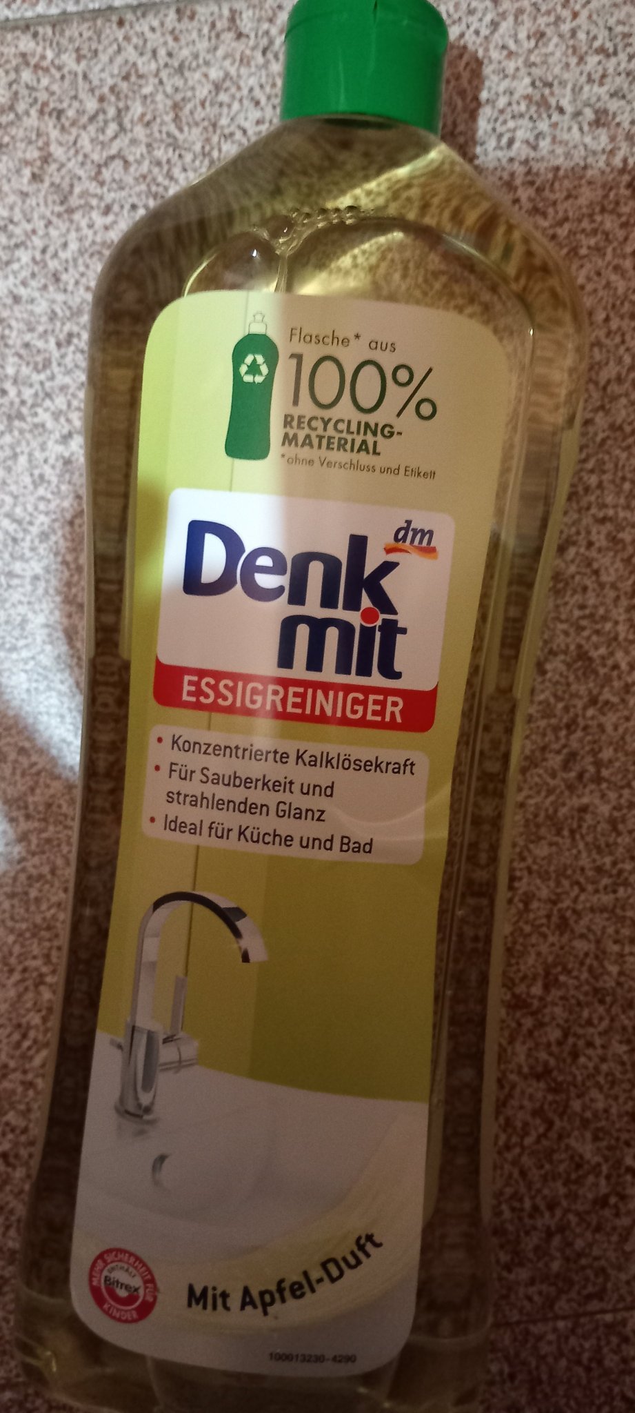 С препарата с оцет почиствам плочките, фугите и санитарията в банята. Малко понамирисва на оцет, но пък чисти добре.