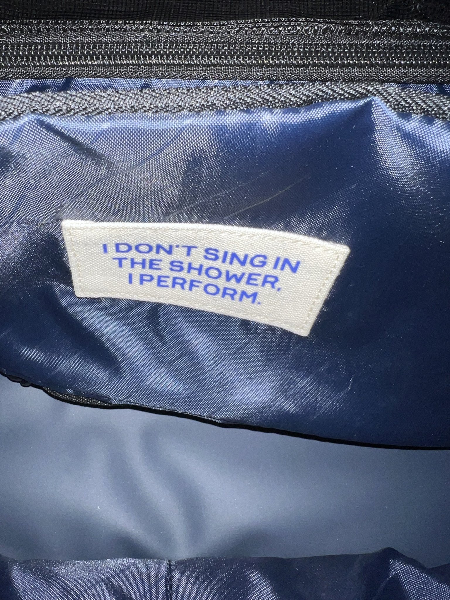 Помните ли несесер с готин надпис, който ви показвах. Взех си по- голям (за пътувания) на същата малка. Той ме усмихна това:
