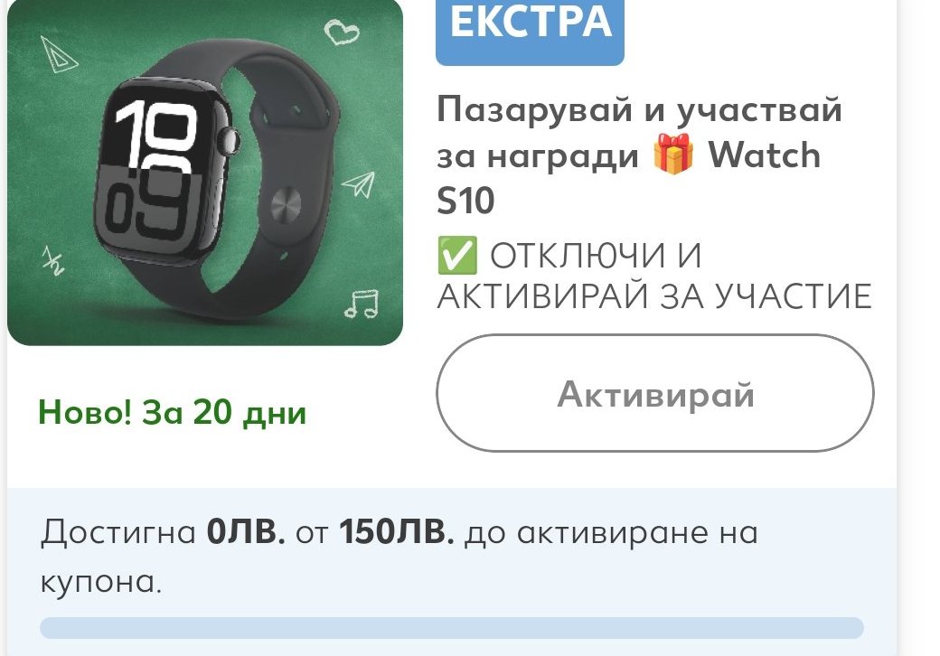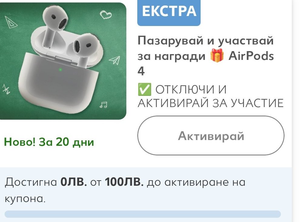 Август приключвам с фотоапарат от морени и две карти(от различни номера) в колата всеки ден по 10-15 кода и нищо,а си мислих колко ще е добре да ми се паднат 4 ваучера .От предишните ваучери на колата си купих 2 чифта маратонки за мен и един на мъжа.