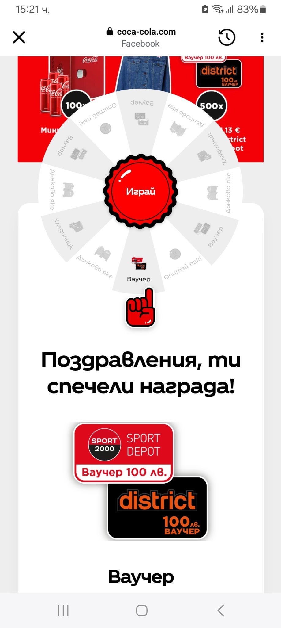 🎁 1 от 500бр. Ваучер за "Sport Depot/District" на стойност 100лв. ( 51,13€ )