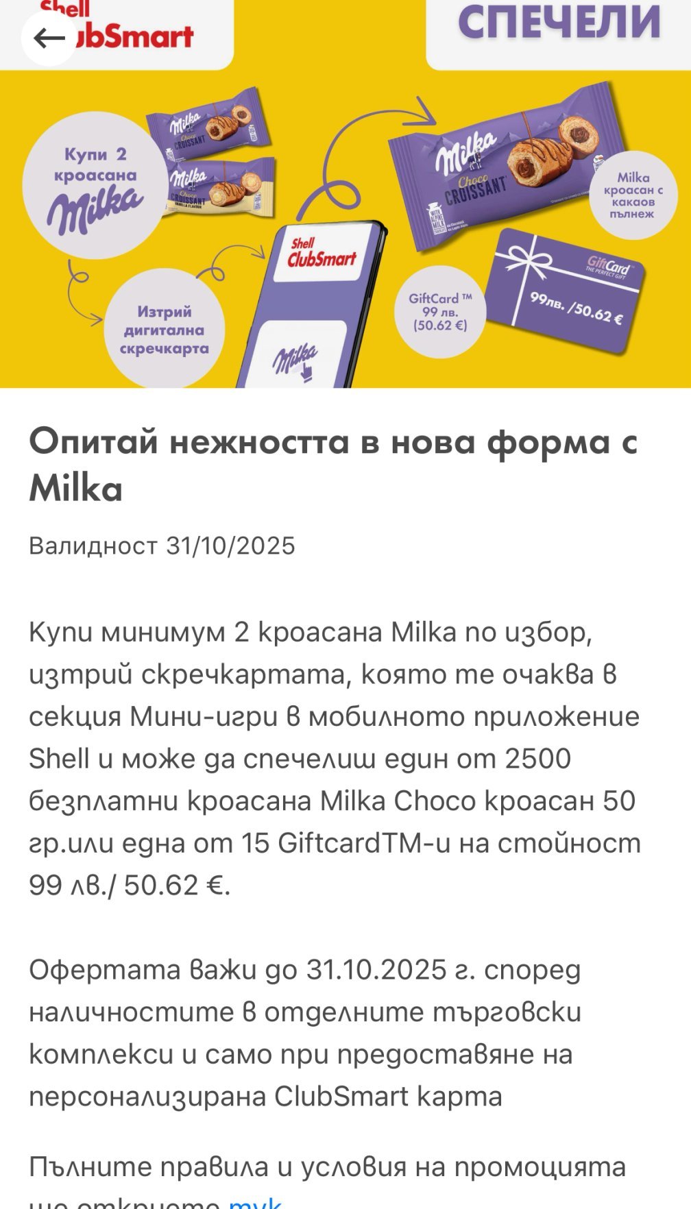 Много се радвам, че има игри на Киндер и Милка ,защото децата ми харесват продуктите им(за разлика от Рошен,Престиж и 7days). Включвам се с още една игра на Милка в бензиностанции Шел: