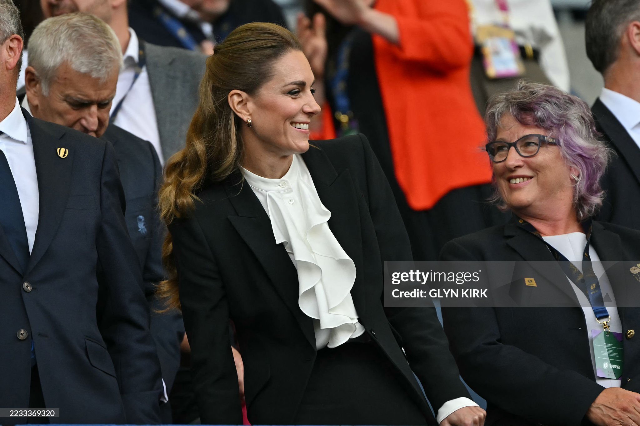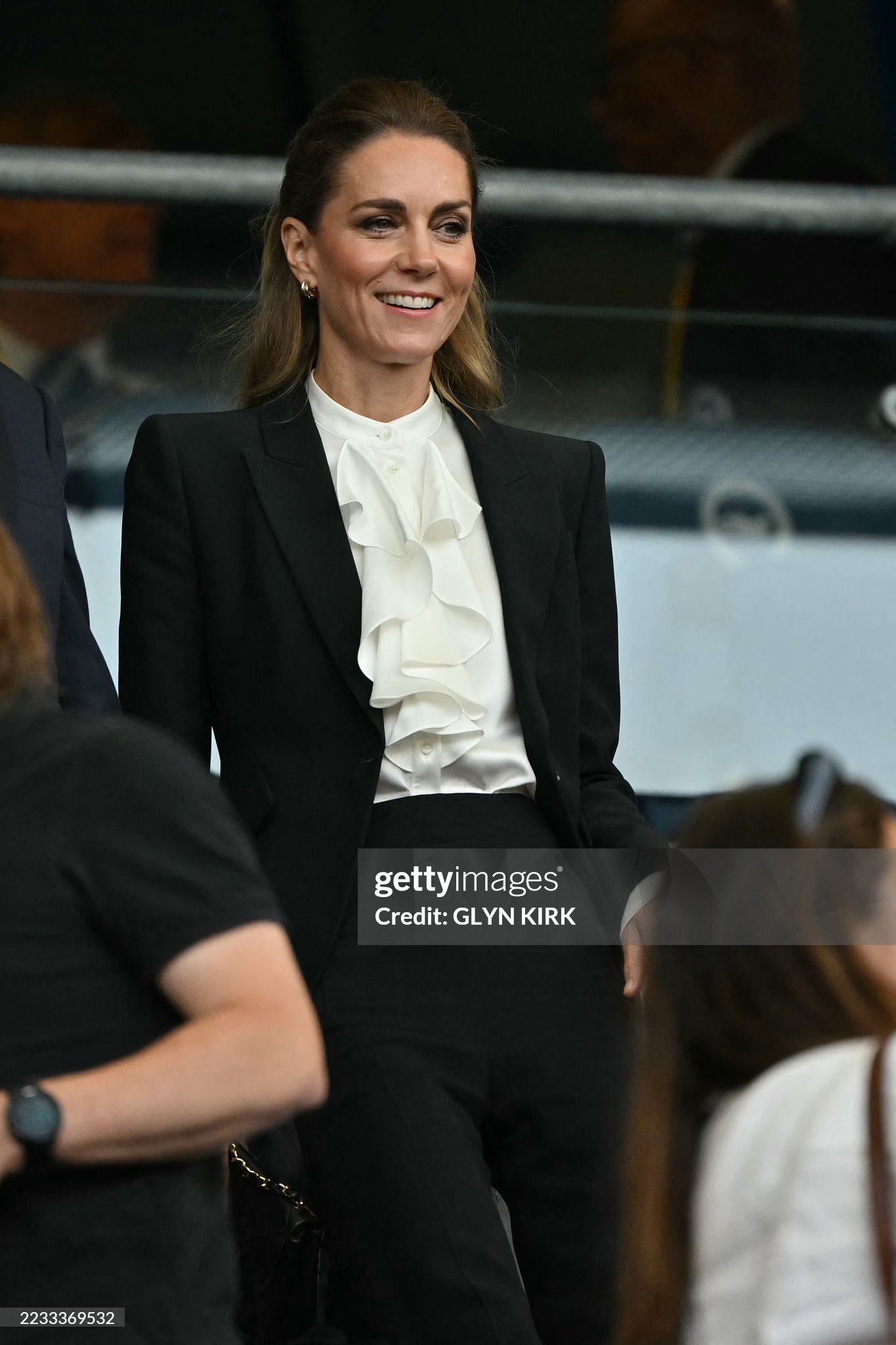 Катрин е невероятна. Страхотна комбинация черен костюм и риза.