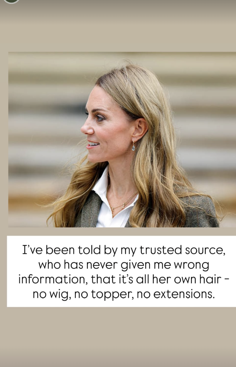 Интересно колко време Катрин ще се задържи с русия цвят на косата. Реално това е най-драстичната й промяна в косата, досега винаги е била брюнетка. Голяма истерия предизвика промяната в цвета на косата - и у доброжелателите, и у недоброжелателите. Чак инстаграм акаунта на кралската модна полиция пусна потвърждение, че това си е нейната коса, без никакви екстеншъни, перуки  или каквото и да е било.