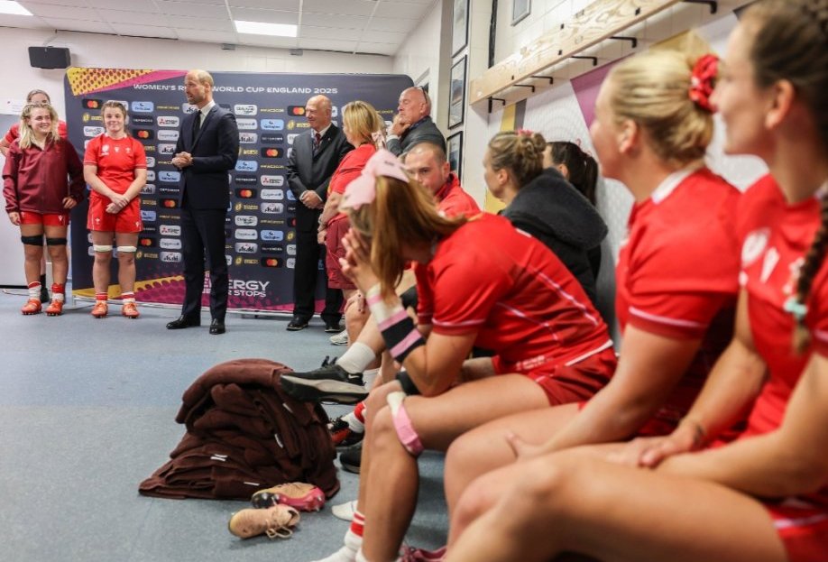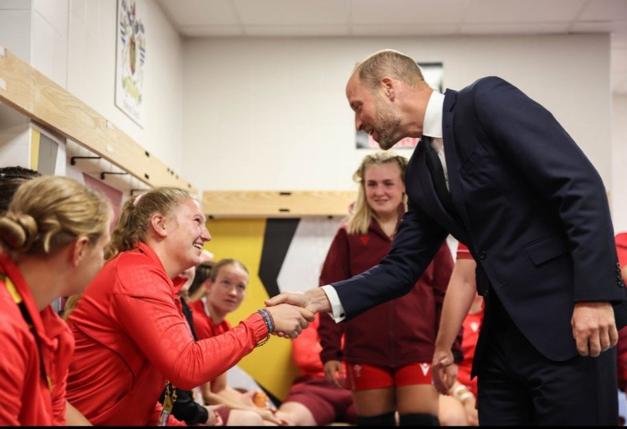 Принцът на Уелс посети женския отбор по ръгби на Уелс след мача.