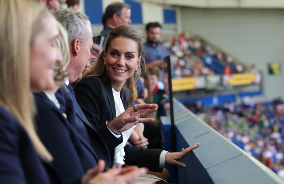 Уилям в добро настроение- винаги е много развълнуван на спортни събития. Добре изглежда - по-улегнал, по-уверен, тежи си на мястото, както се казва.