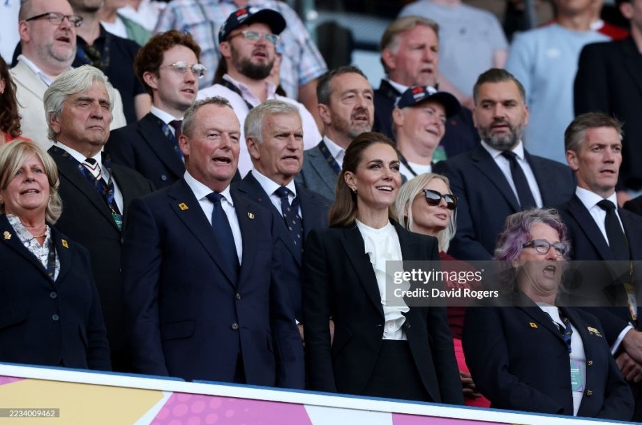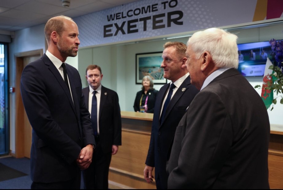 Уилям, принцът на Уелс, на мача от група Б на Световното първенство по ръгби за жени между Уелс и Фиджи на стадион „Санди Парк“ в Екситър, Англия.