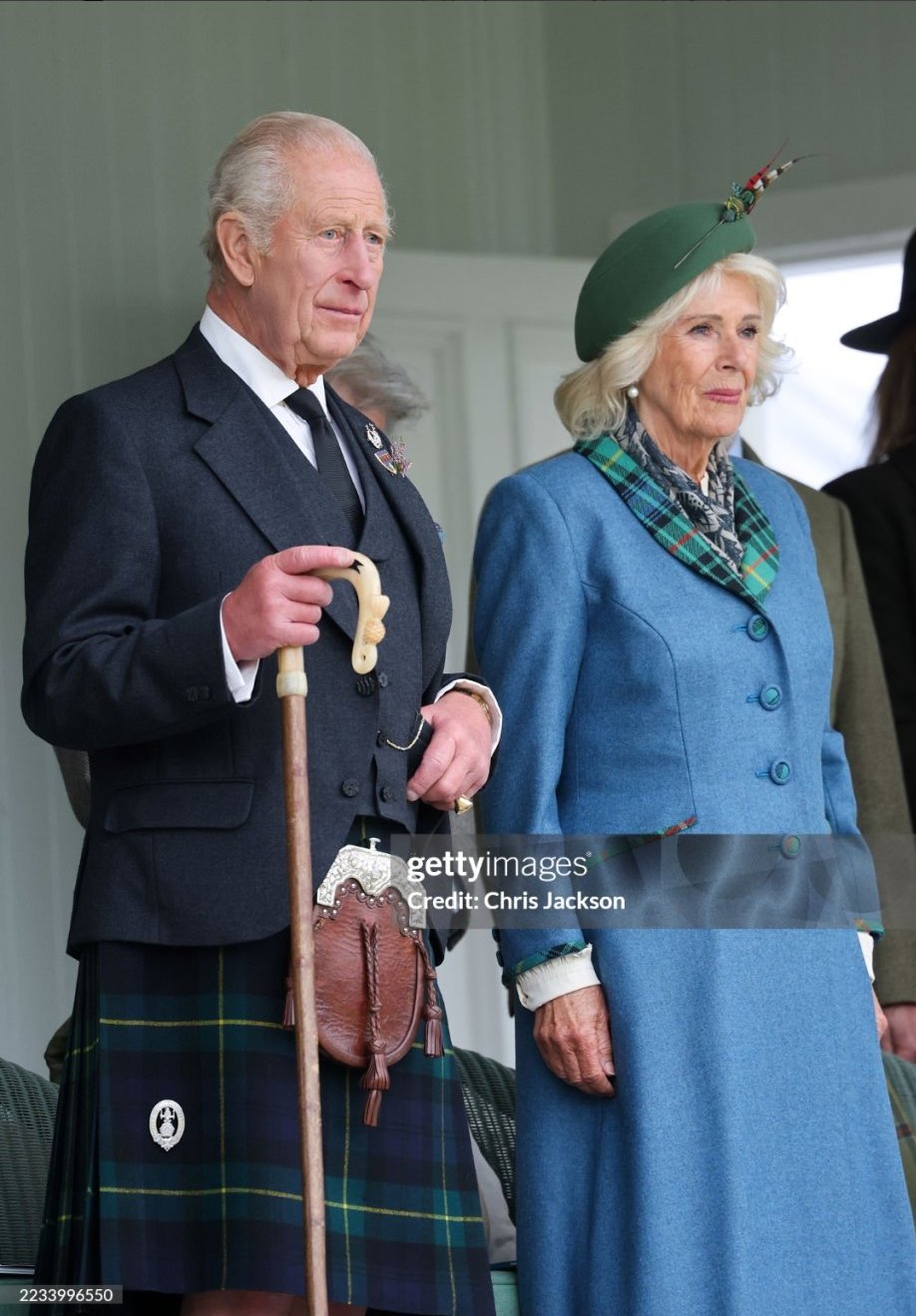 Крал Чарлз III и кралица Камила присъстват на Braemar Royal Highland Gathering в Бреймар, Шотландия.