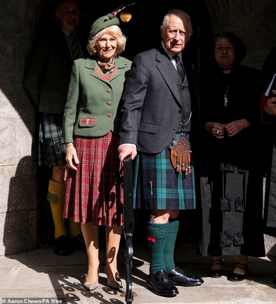 Крал Чарлз и кралица Камила бяха придружени от министър-председателя за традиционната неделна служба в Крати Кърк тази сутрин.