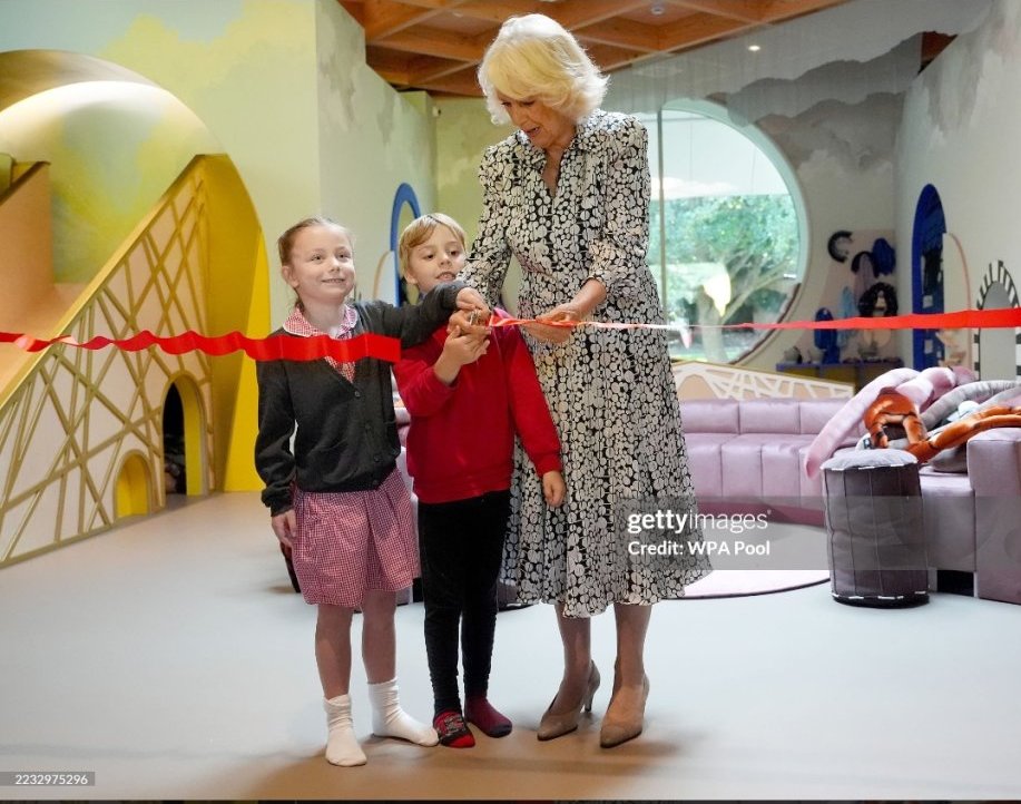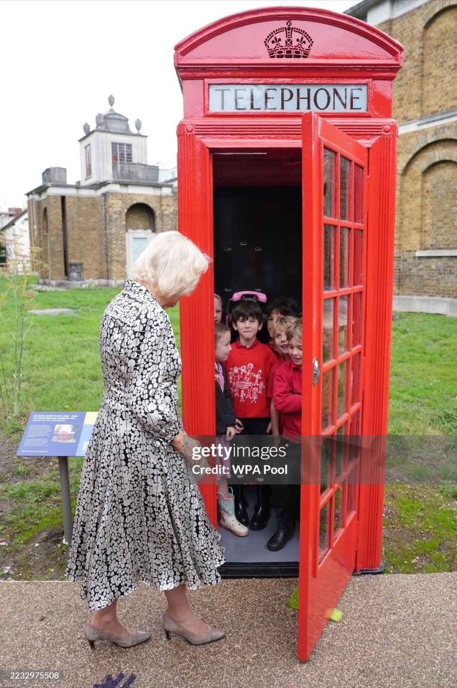 Кралицата в картинната галерия „Дълуич“, където откри новия павилион „Артплей“ и градината със скулптури .🎨